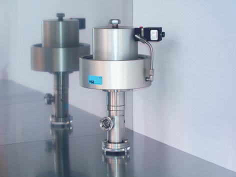 A pneumatic cylinder operates the valve, which is assembled to the valve by using a teflon part for thermic isolation. It is important to keep the temperatures of the actuator under 120°C, and of the solenoid valve under 80°C.